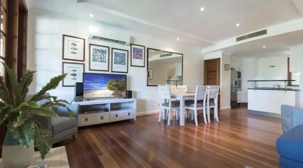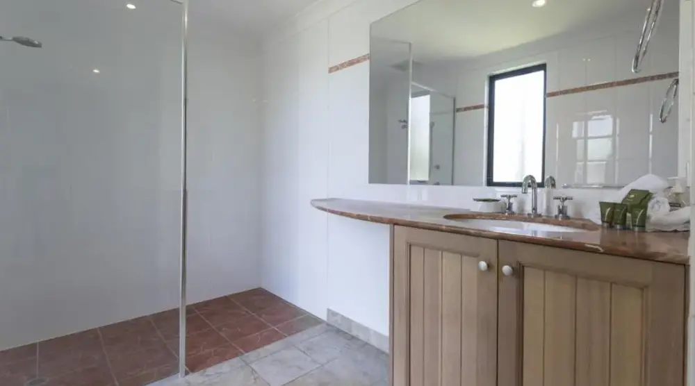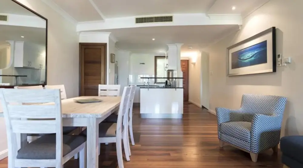 Ang malaking ducted air conditioner chiller unit ay napakaingay at matatagpuan malapit sa mga silid-tulugan kaya kinailangan naming patayin ito kapag natulog na kami. Ito ay hindi isang malaking problema noong kami ay nanatili doon noong Agosto dahil ang panahon ay napaka banayad.